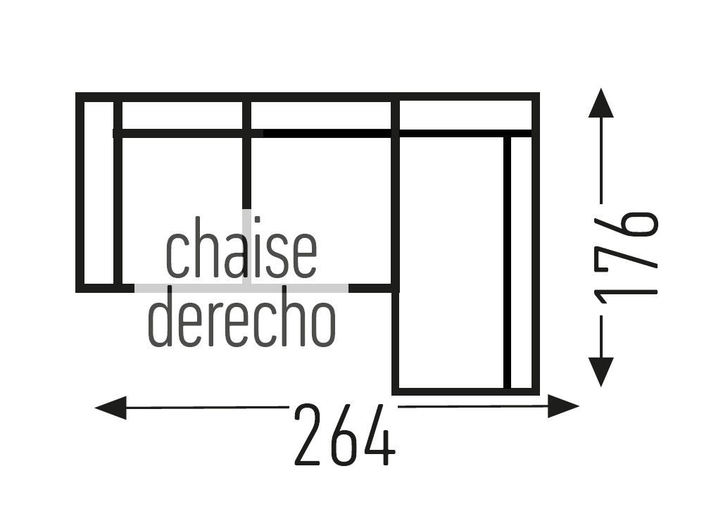 Un chaiselongue creado para disfrutar de la comodidad. Un diseño minucioso y cuidado que hará que pases largas horas en él. MEDIDAS Y TAPIZADOS: Este sofá se fabrica a medida y puede tapizarse en cualquier tejido de los muestrarios de nuestro showroom pero, si no estás en Madrid o prefieres comprarlo de forma online, en nuestra web te ofrecemos algunas de las medidas y de los tapizados más demandados en nuestra tienda para este sofá. MECANISMO: Relax motorizado (1 motor) apertura y cierre. “Pared 0” ESTRUCTURA: Madera de pino, reforzado con tablero de DM. ALMOHADA ASIENTO: Espuma de poliuretano de 34 kg/m3 recubierta de fibra de poliéster. ALMOHADA RESPALDO: Espuma de poliuretano de 20 kg/m3 recubierta de fibra de poliéster. ALMOHADA RIÑONERA: Espuma de poliuretano de 20 kg/m3 recubierta de fibra de poliéster. CABEZAL: Reclinable con bisagra italiana. DESENFUNDABLE: Almohadas asiento y cabezal. PATAS: Metálica color negro. Puedes elegir el lado de la chaiselongue. Medidas: 264 x 176 x h79/98 cm Altura respaldo: 62 cm. | Altura asiento: 45 cm. | Fondo asiento: 55 cm. | Medida abierto: 160 cm. Mopal