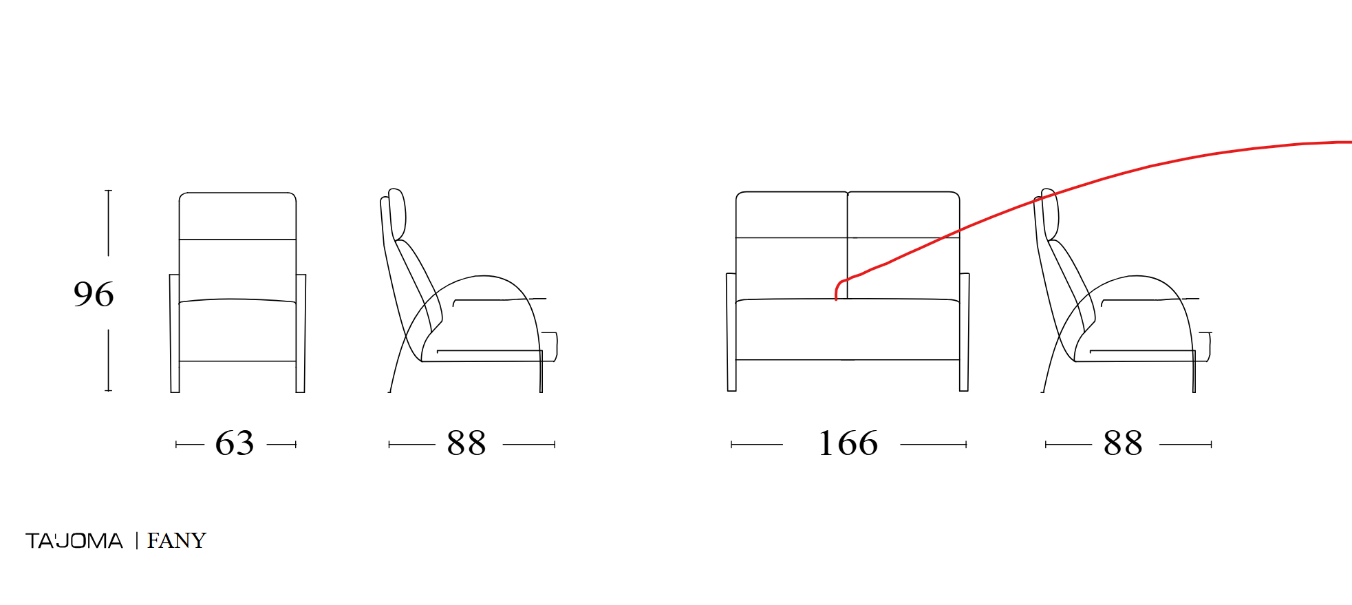 Sofá de 2 plazas. Se adapta a cualquier espacio por sus líneas rectas y sencillas combinadas con una curvada estructura de madera que convierte las patas en los propios reposabrazos de la pieza. Tajoma