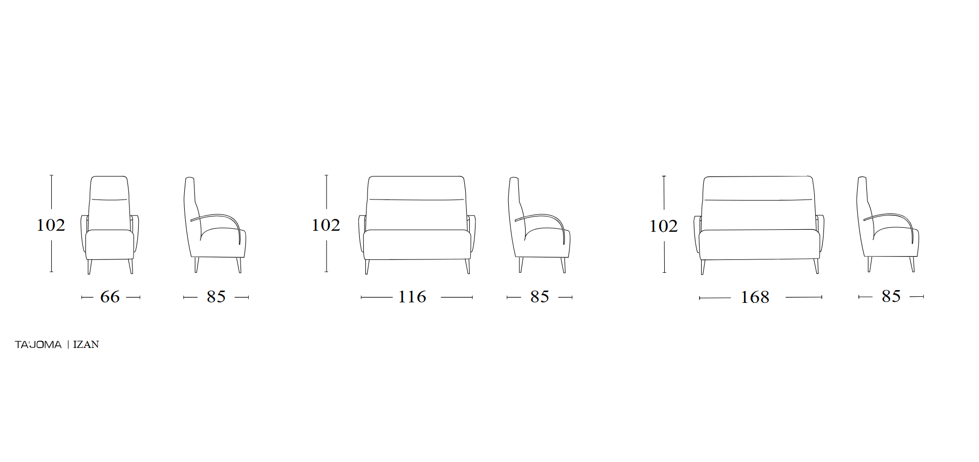 Sofá de 2 y 3 plazas. combinable con butaca del mismo nombre. Modelo versátil y compacto, con patas y reposapiés independientes. Sus lineas y la altura del respaldo garantizan su comodidad. Tajoma