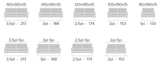 CARACTERÍSTICAS TÉCNICAS: Mecanismo: sistema de apertura italiano, fabricado en tubo de acero, pintado en epoxi, con patas alta metálica. Somier de malla electrosoldada, garantizado para mas de 5,000 aperturas. Certificado (Centro Tecnológico del Mueble y la Madera). Armazón: Madera de pino y tablero de partículas. Asiento: Gomaespuma de 30 kilos recubierto de fibra de 300g. Respaldo: fibra acrílica siliconada. Patas: 11 cm. Colchón. Hr 30 kilos 190 cm de largo x 15 cm de grosor. Todas las medidas pueden tener una oscilación entre +/- 5 cm. Importante: No cerrar el sofá cama, vestido con sabanas o mantas. OPCIONES: Colchón de 15 cm de grosor con visco. Francés Bañon